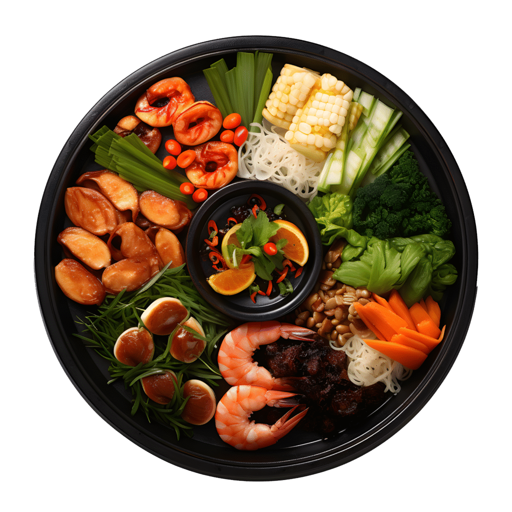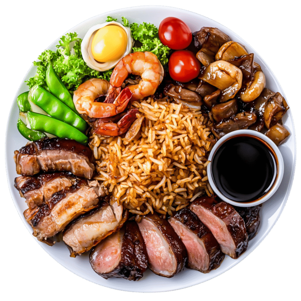 Juicy chicken breast with mashed potatoes, vegetables, and pepper sauce.