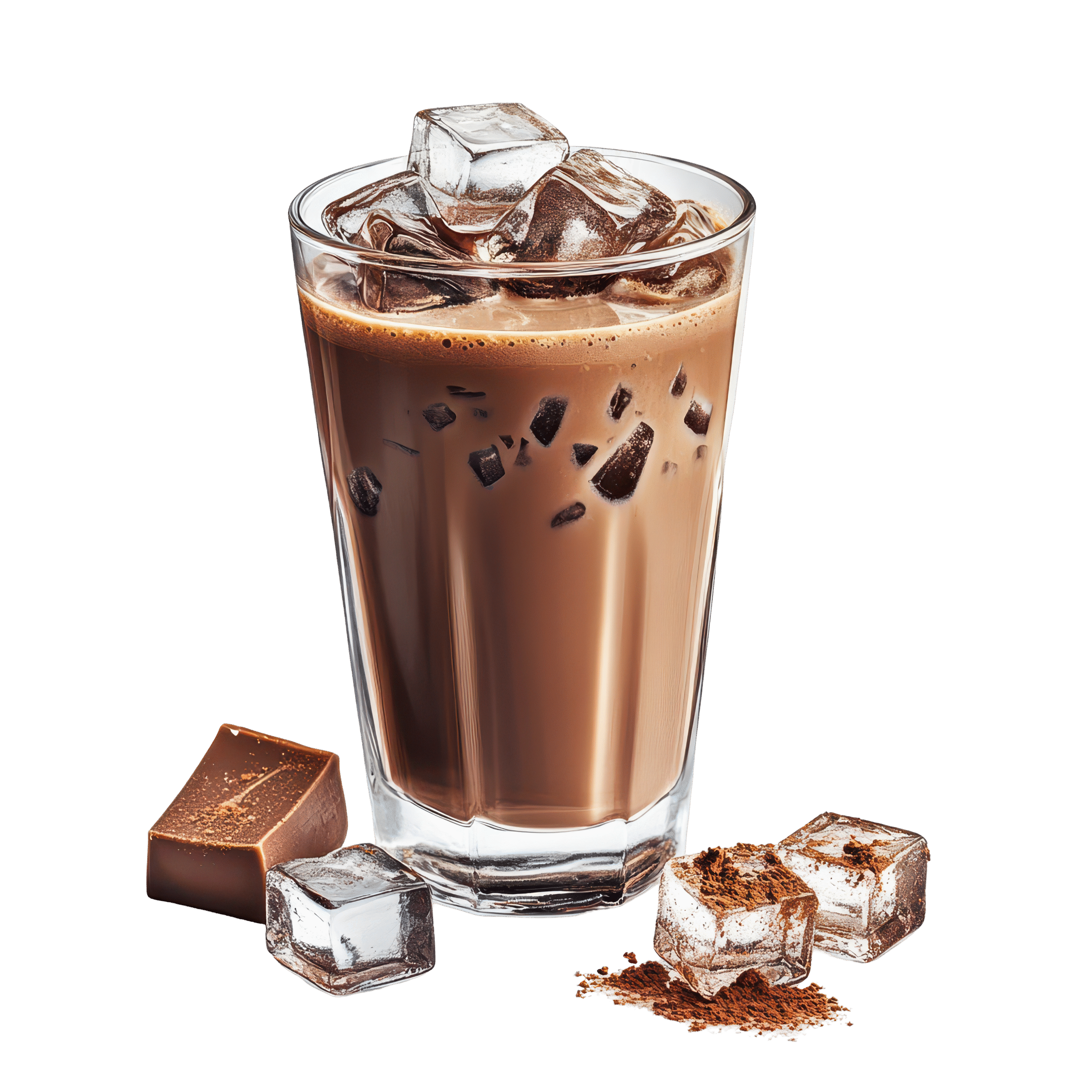 Smooth coffee blended with milk, ice, and sugar, topped with cream for a refreshing chilled drink.