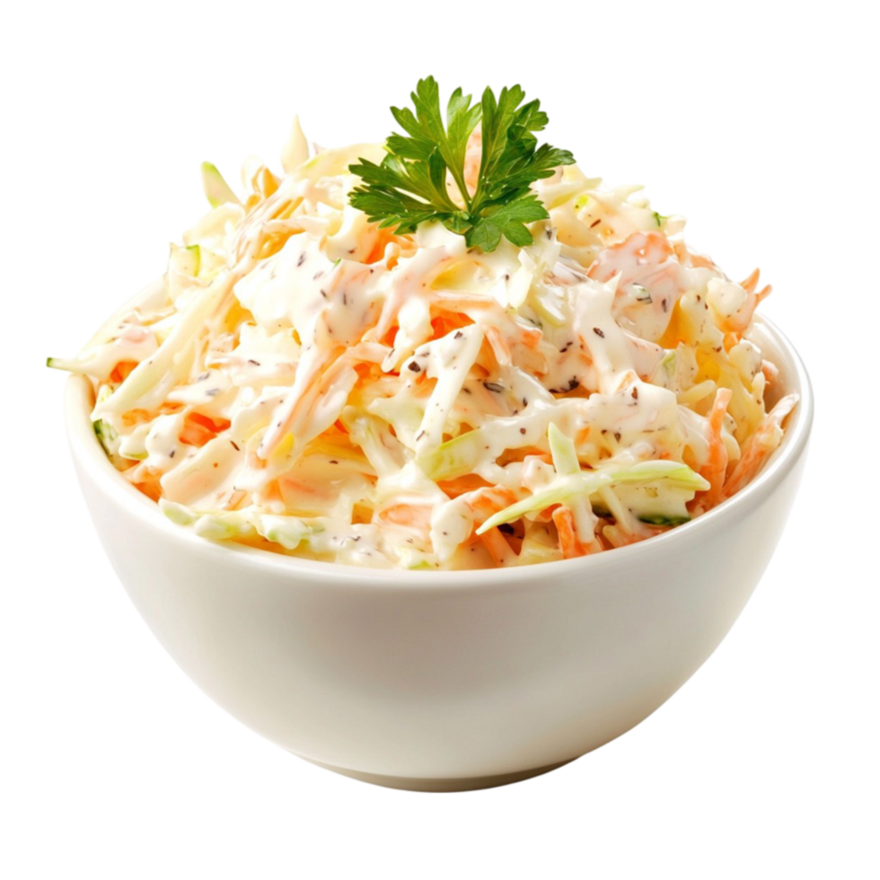 Freshly shredded cabbage and carrots in a creamy dressing.